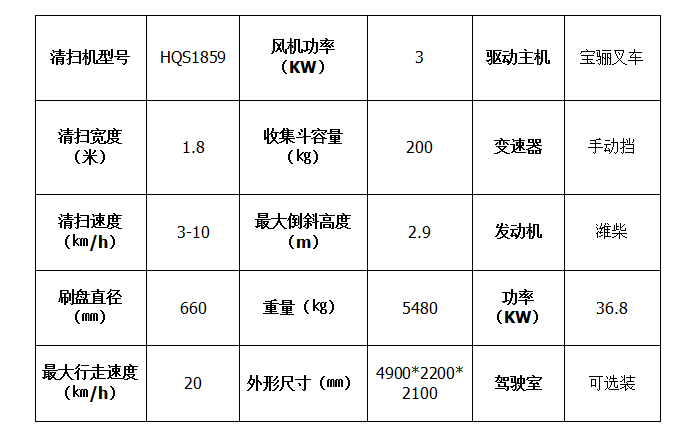 ●適合于高溫、高寒地區(qū)。HQS1859型環(huán)保清掃機(jī)