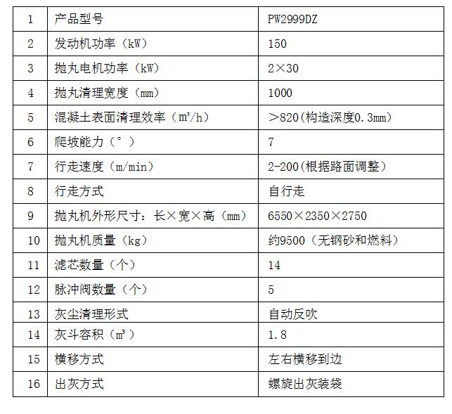 PW2999DZ拋丸機(jī)技術(shù)參數(shù)